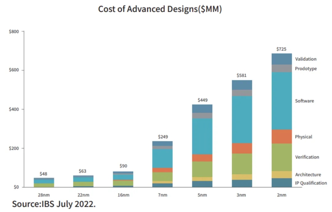 根據IBS《Design Activitiesand Strategic Implications》數據顯示,全球范圍內芯片設計成本日益增高。