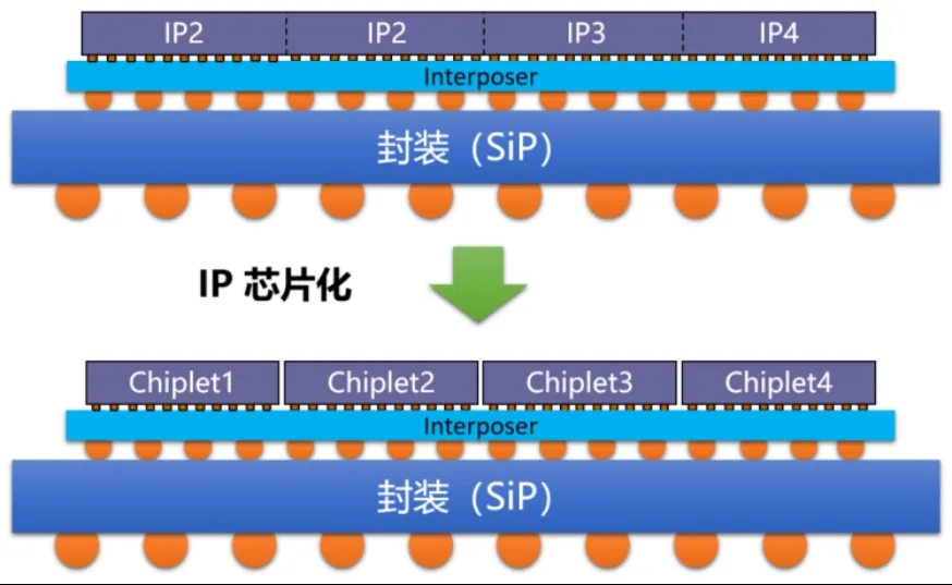 很多人把希望寄托于chiplet技術。Chiplet技術是把一些預先生產好的實現特定功能的芯片裸片(die)通過先進的封裝技術集成在一起形成一個系統級芯片,而這些基本的裸片就是Chiplet。