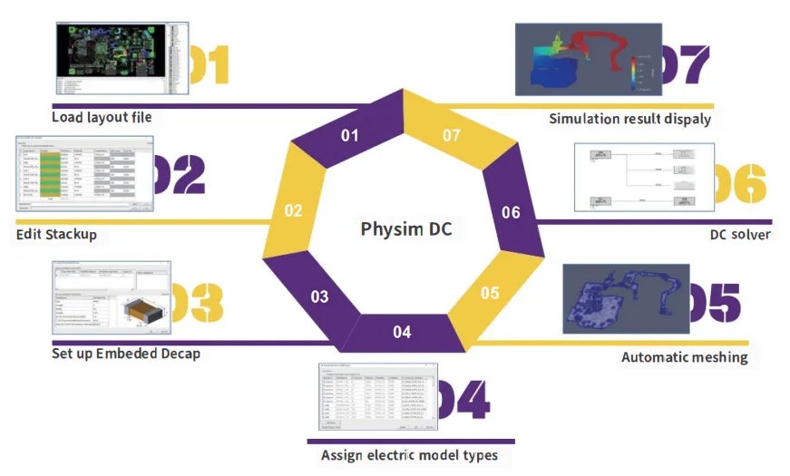PhysimDC是由PhySim自主研發(fā),針對(duì)于當(dāng)前低壓大電流的PCB和封裝產(chǎn)品提供全面直流分析的仿真軟件。PhysimDC基于強(qiáng)大的電路模型建模技術(shù),高精度網(wǎng)格剖分以及精準(zhǔn)高效的仿真求解算法,實(shí)現(xiàn)用戶對(duì)芯片封裝、PCB等電子設(shè)備的電源直流仿真分析。