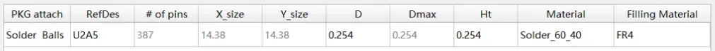 3.4 由于在步驟3.1中選擇Package的連接方式為Solder ball,因此需要設置焊錫球的相關參數,包括焊錫球的尺寸和材料,設置完成后如圖12所示: