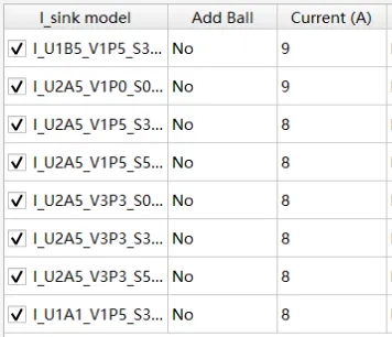 2.5 通過Set up I_Sink models設置所選Sink的電流值,設置完成如圖8所示:
